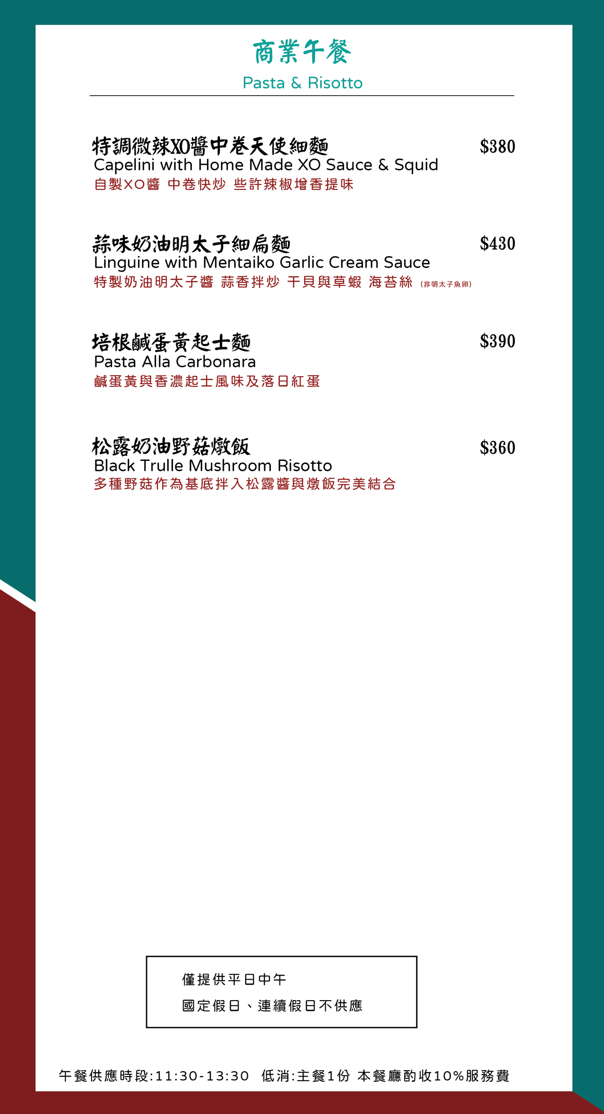 週一~週五 11:30~13:30